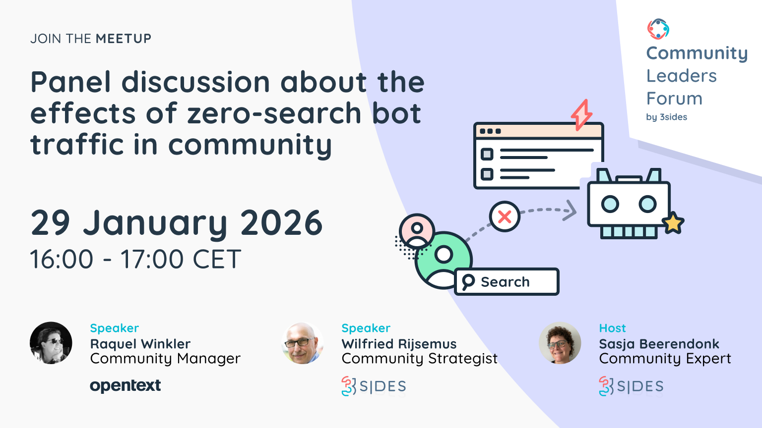 Raquel from Opentext will join the discussion with Wilfried Rijsemus to share her experiences with interpreting bot-driven API calls, what actions you can take, and how tools like robots.txt and Web Application Firewalls (Akamai, Cloudflare, Imperva) can help you regain control.With the insights of these experts we'd like to explore what the zero-search bot traffic means for your community and its specific use case.We look forward to discussing this topic with you, Raquel and Wilfried.